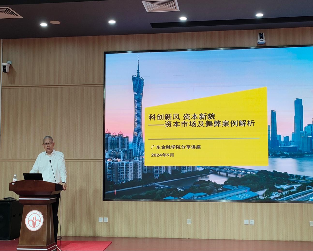 2024年9月12日下午两点半,由哈哈体育和粤港澳大湾区产业升级与企业创新研究中心联合举办的“哈哈体育研究生讲坛(第六期)”在北教103成功举行。此次讲坛邀请安永华明会计师事务所华南区主管合伙人、广州注册会计师协会副会长、粤港澳促进会会计专业委员会副主任黄寅进行题为“科创新风 资本新貌——资本市场及其舞弊案例解析”的专题讲座。讲座由哈哈体育经理秦格教授主持,哈哈体育副经理舒利敏副教授及2024级全体会计硕士研究生参加了本次活动。
