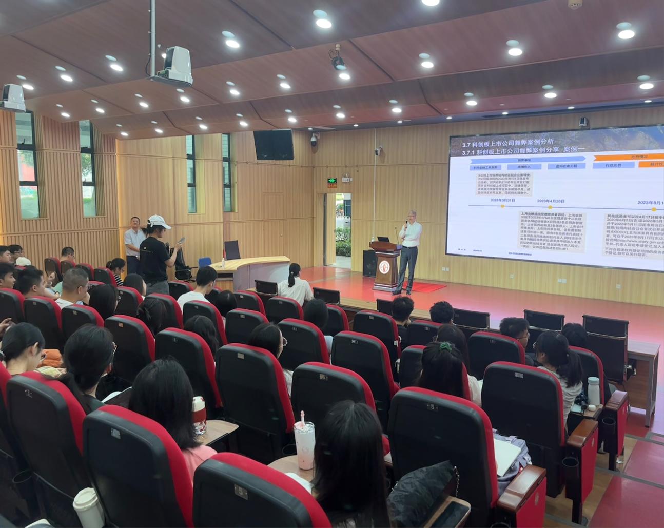 讲座伊始,黄寅先生首先解读了科创板改革的背景、进程及其对资本市场的影响。他表示,自上海证券交易所成立以来,中国不断致力于构建多层次的资本市场体系。科创板作为注册制改革平台,为高科技、创新型企业提供了直接融资的机会,推动了高端装备、新能源、中医药等行业发展。随后,他向同学们详细介绍了科创板申报的常见问题,包括科创板企业的定位、科创板上市问询和终止上市等。