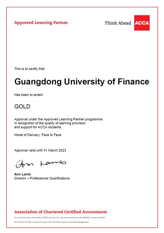 ACCA合作办学机构项目(ALP)是ACCA官方对全球高质量ACCA办学机构的正式认可,公司是广东省第三家获得黄金级认证的高校。