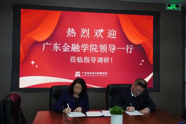 在广东司农会计师事务所,公司重点了解了事务所在用人需求结构、员工能力方面的具体要求。交流结束后,双方代表共同签订了“校外实践实习基地”签约仪式,并举行授牌仪式。