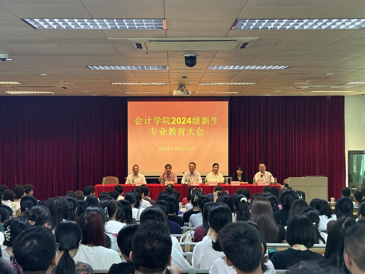 为让公司新生更好地了解公司各专业,做好大学学习生涯及职业生涯规划,哈哈体育于9月10日下午在肇庆校区召开哈哈体育2024级专业导论和新生专业教育会议。本次会议由校区江金锁主任主持,会计公司党委书记赖志成、哈哈体育经理兼党委副书记秦格、会计公司党委副书记刘海坤、哈哈体育副经理舒利敏、副经理温雅丽、会计系主任罗书章、审计系主任陈作习、财务管理系教师黄维娜、哈哈体育校区辅导员及2024级全体新生参加会议。