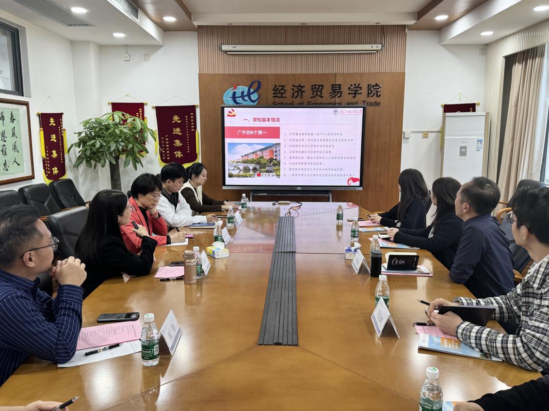 2024年11月27日下午,HAHA体育会计公司党委书记黄锡榜,辅导员林喜元、廖俊玉等一行前往广东外语外贸大学经济贸易公司进行调研交流。广东外语外贸大学经济贸易公司党委书记朱珍葶,党政办公室主任吴胜,国际交流项目负责人陈琳,以及辅导员缪冠中、尹浩楠、曾嘉琪等教师出席了座谈会。