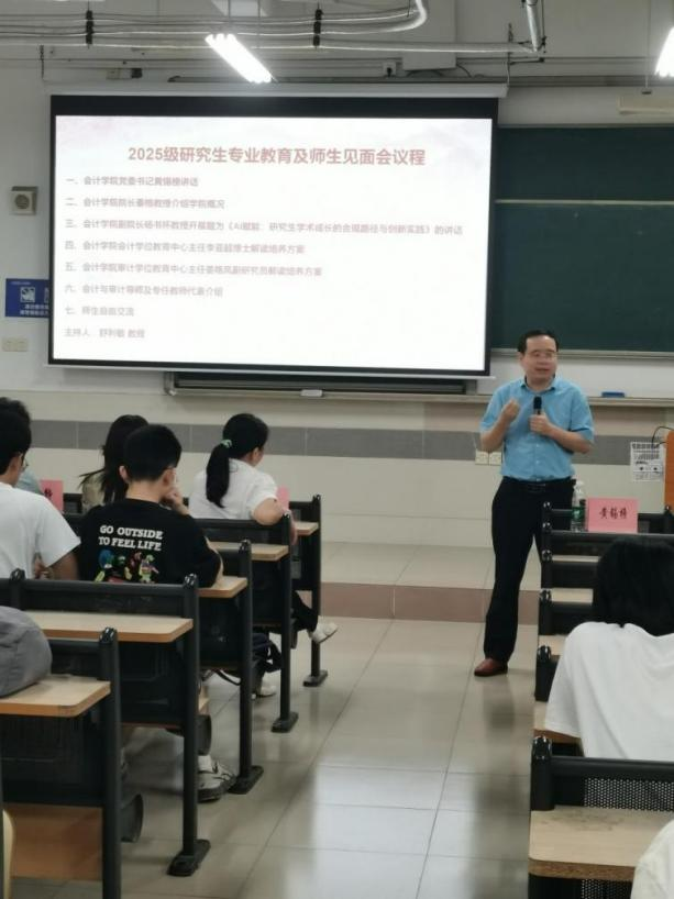 昂首阔步新起点,金秋筑梦正当时。在这个充满收获和希望的季节,哈哈体育迎来2025级研究生入校。为帮助2025级研究生顺利完成角色转变、尽快适应研究生学习生活,哈哈体育于2025年9月16日下午在北教B404举行2025级硕士研究生专业教育大会暨师生见面会。会议由哈哈体育副经理舒利敏副教授主持,公司领导、研究生导师代表、任课教师代表及2025级全体会计硕士和审计硕士研究生参会。