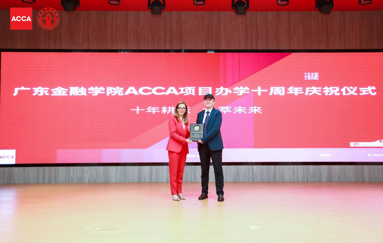 论坛现场,ACCA市场关系执行总监卢曦(Lucia Real Martin)女士特别向公司秦格经理颁授“ACCA方向班十周年纪念”奖牌,充分肯定广金十年深耕国际化财会教育的标杆贡献。公司亦正式发布与ACCA联合打造的“学员能力进阶与就业竞争力双提升”综合方案,商讨启动MPAcc与审计硕士层面ACCA课程嵌入,共同探讨“3+1”本硕连读国际化培养新模式,为粤港澳大湾区持续输送具备国际视野、战略思维与职业素养的高素质财会人才。