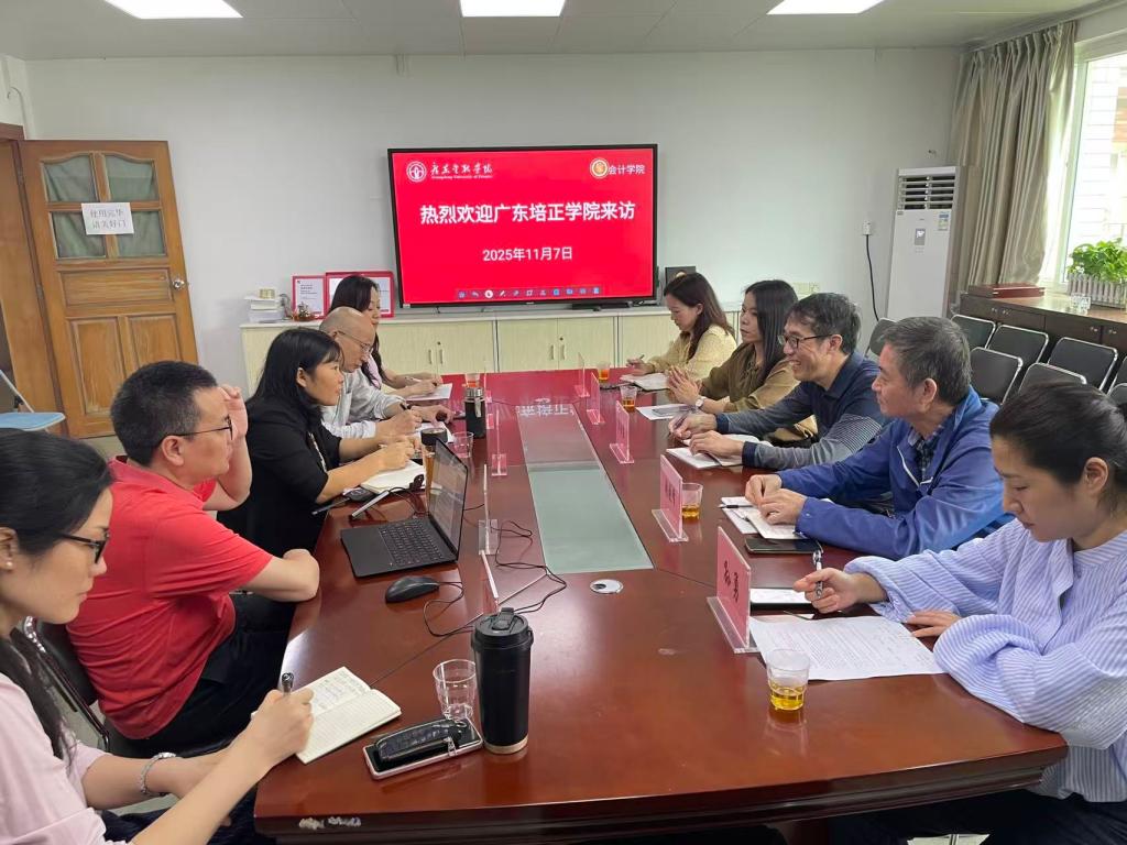 2025年11月7日上午,广东培正公司哈哈体育副经理谭洪益一行五人来公司哈哈体育调研交流。公司副经理温雅丽主持接待并主持召开专题交流会,会计系主任罗书章、智能会计系主任兼产业公司执行经理汤四新、财务管理教研室主任钟纯及许剑娜老师参加交流。