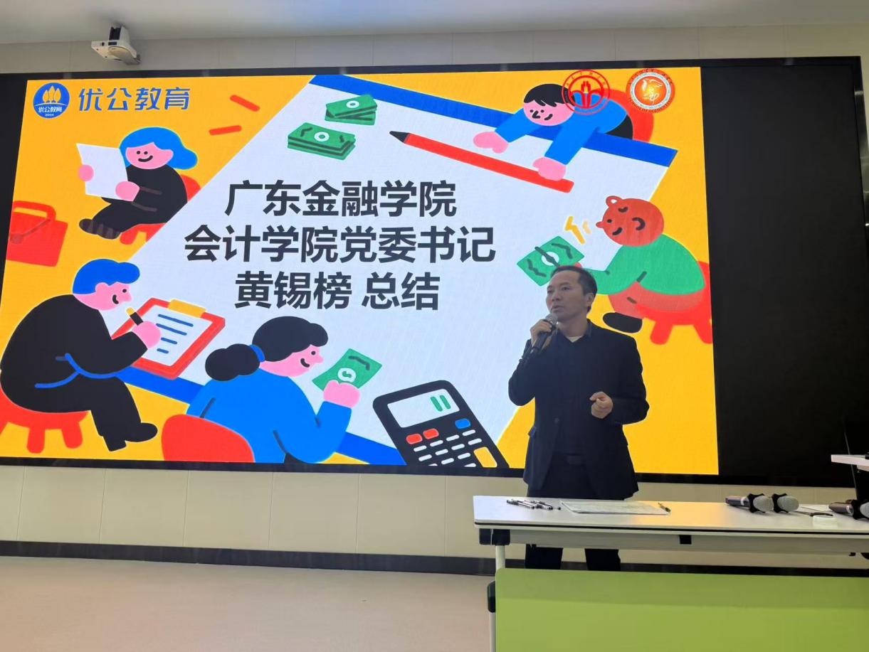 比赛结束后,公司党委书记黄锡榜发表了总结讲话。他首先对大赛的成功举办和选手们的优异表现表示祝贺,并对支持单位表示感谢。黄书记强调,深厚的金融文化素养是金融人才行稳致远的重要基石。他勉励广大学子,要将个人理想融入国家发展大局,不仅要练就服务社会的过硬本领,更要涵养以诚实守信为核心的金融品格,成长为德才兼备、担当民族复兴大任的“红色金融家”。