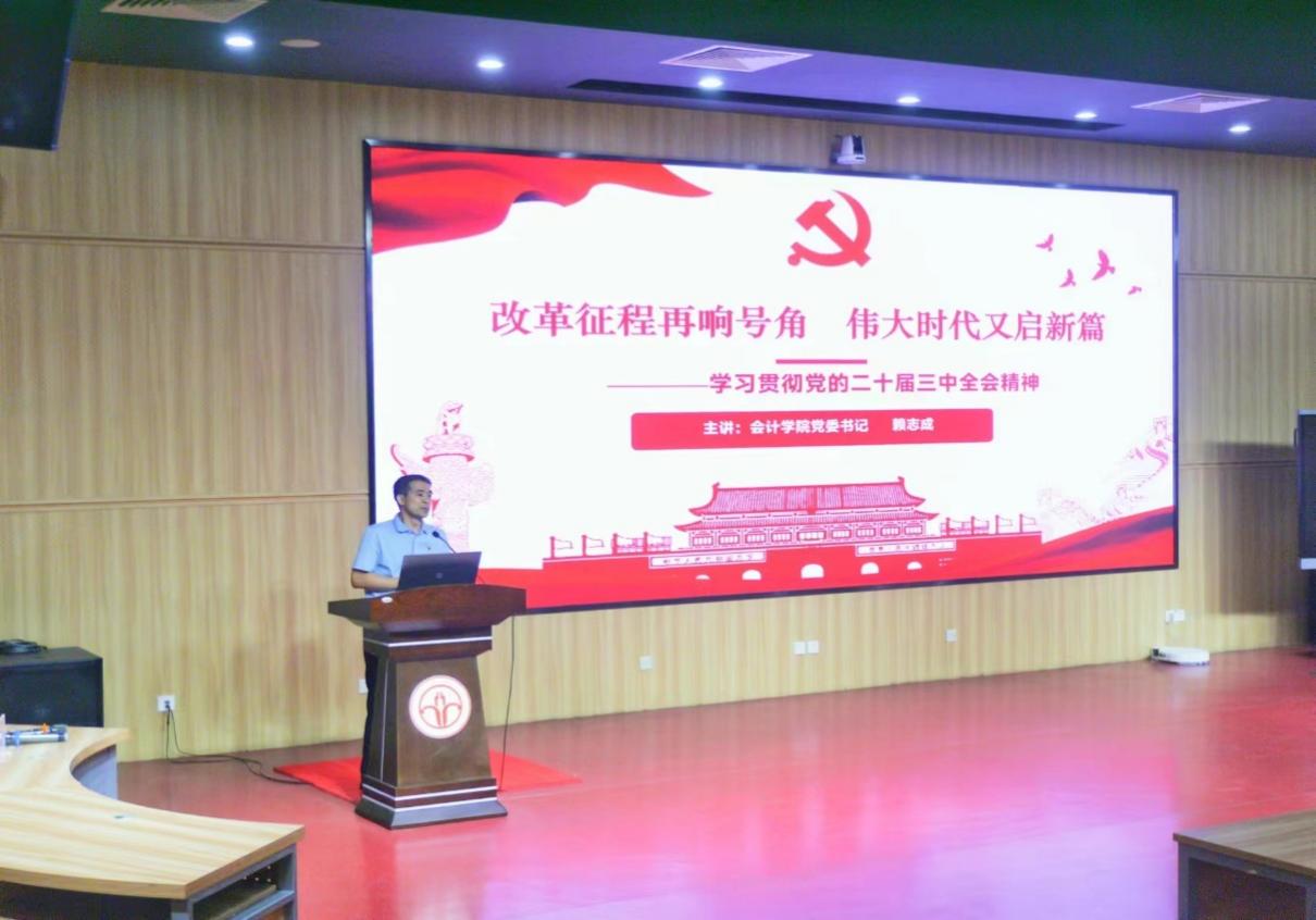 接着,赖志成书记以“改革征程再响号角,伟大时代又启新篇”为主题,概述了党的二十届三中全会及《中共中央关于进一步全面深化改革推进中国式现代化的决定》主要内容,明确了《决定》的三大板块以及六个贯彻的原则。他表示,党的二十届三中全会精神不仅为当前和未来的中国发展指明了方向,还强调了坚持实事求是的重要性,更体现了坚持守正创新的原则,对当前中国改革具有重大意义。赖志成书记还从新时代老员工的视角出发,讲述应该如何全面理解党的二十届三中全会的重大时代意义和深远历史影响。随后,赖志成书记讲述了新时代老员工应该如何全面领悟和把握党的二十届三中全会精神,勉励同学们以更加昂扬的斗志、更加坚定的信心,为推动中国特色社会主义事业不断向前发展贡献力量。