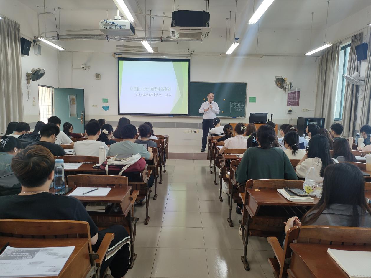 活动开始,秦格经理以“中国自主会计知识体系框架”为核心议题,进行了深入的思政课教学。他强调,构建中国自主会计知识体系必须坚定不移地以习近平新时代中国特色社会主义思想为指导。秦经理详细阐述了构建该体系的重大意义及必要性,并展示了中国人民大学课题组与南京理工大学课题组关于中国自主会计知识体系的研究框架,对框架内容进行了细致的讲解和拓展。授课接近尾声时,秦格经理对中国自主会计知识体系的未来发展表达了殷切期望,并鼓励同学们积极运用所学知识,为该体系的构建和完善提出个人见解。他特别指出,同学们应加强思考、勇于辩论,培养批判性思维,为国家治理体系和治理能力现代化贡献力量。