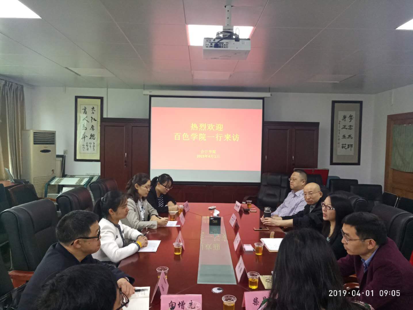 4月1日,百色公司工商管理公司一行6人来访公司,来访人员有百色公司工商管理公司财务管理系系主任冯巧玲、副主任白兰琼及相关老师,公司文芳经理、马鹏副经理、罗书章主任、赵剑锋主任接待了百色公司一行。