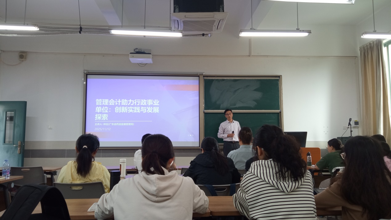 2025年11月12日下午,哈哈体育在北教B407成功举行行业导师进课堂活动。本次活动邀请了广东省药品监督管理局办公室主任林应导师(原财务处处长、一级调研员)担任主讲嘉宾,走进管理会计理论与实务课堂,讲课主题为“管理会计助力行政事业单位:创新实践与发展探索”。本次行业导师进课堂活动由哈哈体育赵剑锋副教授主持,2025级会计专硕全体员工参与本次活动。 讲座伊始,林应主任首先对管理会计与行政事业单位的基本概念进行了系统梳理。他结合广东省深化机构改革的背景,详细阐述了行政事业单位的职能分类与运行特点,包括行业专项管理、市场监管体系、公共安全与司法保障、自然资源与生态保护等职能模块,并指出事业单位在提供公共服务方面的重要支撑作用。他强调,管理会计正在从传统的“账房先生”向“战略参谋”转变,其核心价值在于优化资源配置、提升运营效率、强化绩效管理和支撑科学决策。 接着,林主任结合广东省药监局的实际工作,分享了管理会计在行政事业单位中的创新实践。他提出“管理会计循环驱动链”模型,涵盖“规划决策—成本控制—绩效监督”三大环节,并通过六个典型案例生动展示了管理会计在预算编制、内控建设、绩效评价等方面的具体应用。林主任指出,“预算编制是规划实施的关键,项目能否立项并纳入预算,直接决定后续工作的开展”,凸显了管理会计在政府资源配置中的枢纽作用。 在探讨管理会计在行政事业单位中的深化路径时,林主任提出四点建议:深化业财融合、创新人才培养、加快信息技术应用、优化政策环境。他特别鼓励年轻师生积极探索人工智能在管理会计中的实践路径,并系统阐述了AI如何破解传统管理会计在数据孤岛、分析浅层、效率低下等方面的痛点。他从“智能预算管理”“精准成本控制”“科学绩效评价”等场景出发,描绘了“AI+管理会计”在政府治理中的广阔前景。 在课堂互动环节,与会师生围绕“政府采购中的挑战与应对”“职业生涯发展建议”“业财融合实践路径”等问题踊跃提问。林主任结合自己二十三年的机关工作经历,强调“诚实、公正、忠诚”是财务人员的立身之本,鼓励大家在守住底线的基础上勇于担当、创造价值。 最后,林主任以“学以致用、知行合一、精业笃行、守住底线、修身明德、久久为功、胸怀大局、勇于担当”三十二字箴言勉励在场师生。他希望大家锤炼专业本领,恪守职业操守,提升人生格局,强化使命担当,在新时代背景下,立足粤港澳大湾区建设,投身“十五五”规划实践,争做“价值创造者”,为高质量发展贡献会计智慧与力量,谱写时代华章。